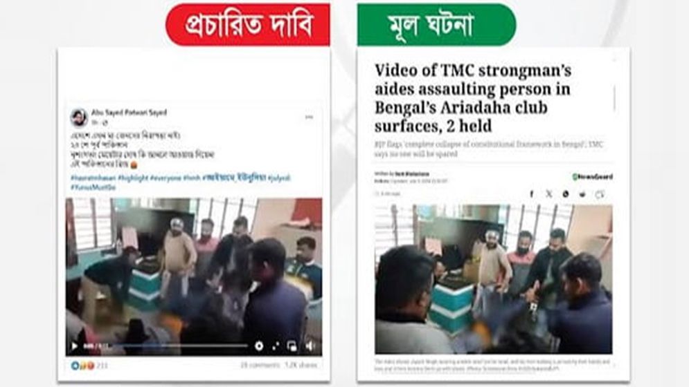ছবি: সংগৃহীত ভারতের পশ্চিমবঙ্গের ২০২১ সালে এক নারীকে লাঞ্ছিত করার ভিডিওকে বাংলাদেশের অন্তর্বর্তী সরকারের সময়ের ঘটনা বলে বিভ্রান্তি সৃষ্টির অপচেষ্টা শনাক্ত করেছে প্রেস ইনস্টিটিউট বাংলাদেশ (পিআইবি)-এর ফ্যাক্ট চেক ও মিডিয়া রিসার্চ টিম বাংলাফ্যাক্ট। বাংলাফ্যাক্ট অনুসন্ধান টিম জানিয়েছে, ‘নারী নির্যাতনের ভিডিওটি বাংলাদেশের নয়, ভারতের।’ তারা আরও জানায়, এক নারীকে মারধরের একটি ভিডিও সম্প্রতি সামাজিক যোগাযোগমাধ্যম ফেসবুকে ছড়িয়ে দাবি করা হচ্ছে, এটি অধ্যাপক ড. মুহাম্মদ ইউনূসের শাসনামলে বাংলাদেশের ঘটনা। বাংলাফ্যাক্ট যাচাই করে দেখেছে, ফেসবুকে ছড়িয়ে পড়া এই ভিডিওটি বাংলাদেশের নয়। প্রকৃতপক্ষে, এটি ভারতের পশ্চিমবঙ্গের উত্তর ২৪ পরগনায় ২০২১ সালের ভিডিও। আলোচিত দাবিটি যাচাইয়ে ভিডিওটির কিছু কি-ফ্রেম রিভার্স ইমেজ সার্চ করলে ভারতীয় গণমাধ্যম দ্য ইন্ডিয়ান এক্সপ্রেস-এর ওয়েবসাইটে ২০২৪ সালের ৯ জুলাই প্রকাশিত একটি প্রতিবেদনে ব্যবহৃত ছবির সঙ্গে ছড়িয়ে পড়া ভিডিওর দৃশ্যের মিল পাওয়া যায়। ওই প্রতিবেদনে বলা হয়, উত্তর ২৪ পরগনা জেলার কামারহাটি এলাকায় একটি ক্লাবের ভেতরে তৃণমূল কংগ্রেসের এক নেতার সহযোগীরা ওই নারীকে লাঞ্ছিত করে। পরে ঘটনাটির ভিডিও প্রকাশিত হয়। পশ্চিমবঙ্গ পুলিশ সূত্রে গণমাধ্যমটি জানিয়েছে, ঘটনাটি ২০২১ সালের ফেব্রুয়ারিতে আড়িয়াদহ তালতলা স্পোর্টিং ক্লাবে ঘটেছিল এবং সেসময় এ ঘটনায় জড়িত দুইজনকে গ্রেপ্তার করা হয়। এ ছাড়া ভারতের নিউজ ১৮, ইটিভি ভারত, ইন্ডিয়া টিভিসহ একাধিক গণমাধ্যমেও একই ঘটনার সংবাদ প্রকাশিত হয়েছে বলে জানায় বাংলাফ্যাক্ট। পশ্চিমবঙ্গে নারীকে মারধরের পুরনো ভিডিও অধ্যাপক ড. মুহাম্মদ ইউনূসের শাসনামলে বাংলাদেশের বলে ইন্টারনেটে প্রচার করা হচ্ছে, যা বিভ্রান্তিকর বলে প্রমাণ পেয়েছে বাংলাফ্যাক্ট। বাংলাদেশে চলমান গুজব, ভুয়া খবর, অপতথ্য প্রতিরোধ এবং জনগণের কাছে সঠিক তথ্য পৌঁছে দিতে দায়িত্ব পালন করছে বাংলাফ্যাক্ট।